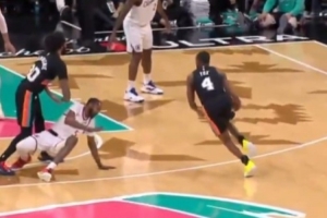 GIF-还有个回合险些将小卡直接晃倒,可惜三分没进